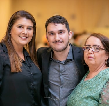 Marcos e as Professoras Elaine Rodrigues (Esq.) e Idalina Silva (Dir.) em 18/10/2019