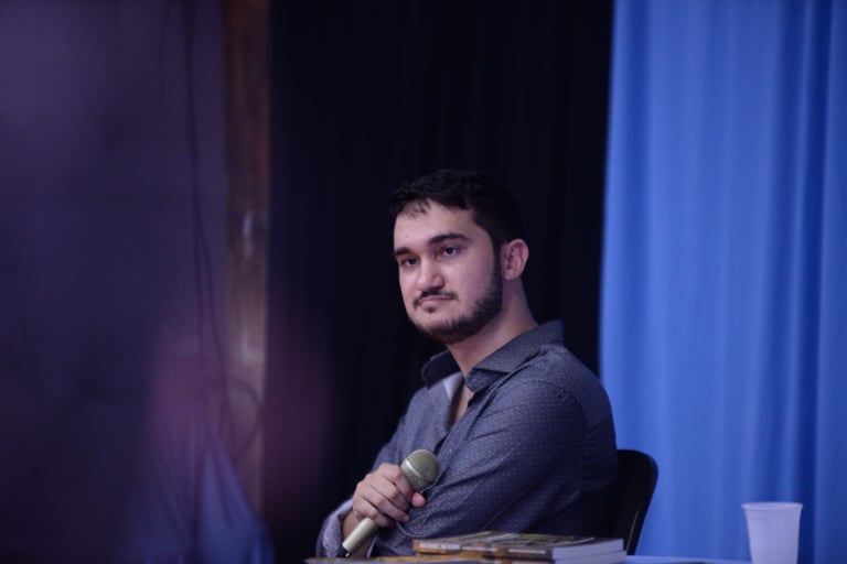 Marcos fala sobre "Michael Jackson: O Ídolo, o Herói e o Amigo" na Biblioteca Municipal José Pedro Carolo em Pontal, SP em 03/12/2019